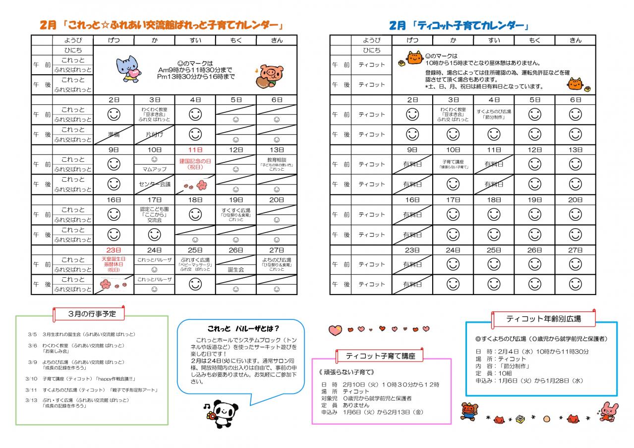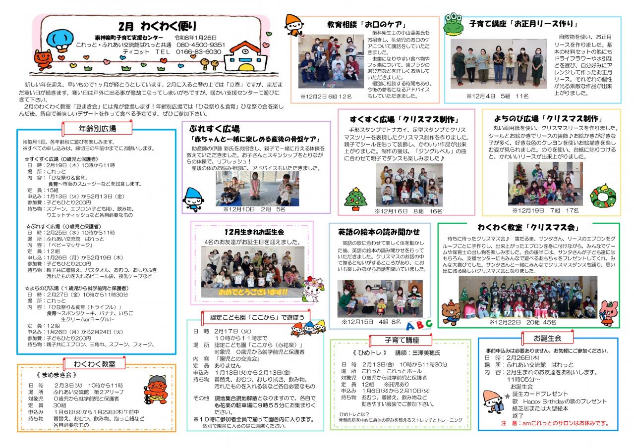 子育て支援センターわくわく便り2月号を添付します。